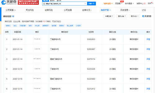 四川嘉唯環(huán)境工程有限公司于12月起陸續(xù)申請注冊“理塘丁真牦牛肉”、“丁真家牦牛肉”、“丁真牦牛肉”等商標(biāo),國際分類均為食品,目前商標(biāo)狀態(tài)顯示為“商標(biāo)申請中”。