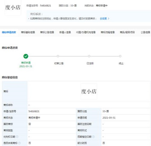 近日,百度在線網絡技術(北京)有限公司申請注冊“度小店”商標,國際分類為酒,當前商標狀態為“商標申請中”。據悉,度小店為百度旗下提供全面電商解決方案的平臺。
