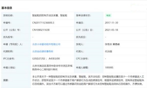北京小米移動軟件有限公司被授權發(fā)明專利“智能鞋的控制方法及裝置、智能鞋”,專利公開號為CN108021163B,企查查專利摘要顯示,本公開是關于一種智能鞋的控制方法及裝置、智能鞋,該方法包括:控制智能鞋設置的至少一個傳感器進入工作狀態(tài);獲取所述至少一個傳感器基于用戶腳部行為生成的感測信號;根據(jù)所述感測信號,控制所述智能鞋執(zhí)行目標操作。該技術方案可以通過傳感器識別出的用戶腳部行為來控制智能鞋自動執(zhí)行目標操作,方便快捷。