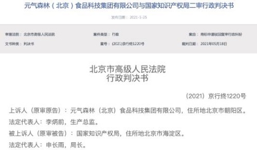 5月25日,北京法院審判信息網公布元氣森林(北京)食品科技集團有限公司與國家知識產權局二審行政判決書。判決書顯示,元氣森林申請的“燃”商標與統一、蒙牛“燃”等商標構成近似商標,法院駁回元氣森林訴訟請求。