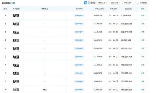珠海市魅族科技有限公司最近再次申請注冊數個“魅藍”商標,國際分類涉及通信服務、科學儀器、廣告銷售、網站服務等。目前商標都在申請中。