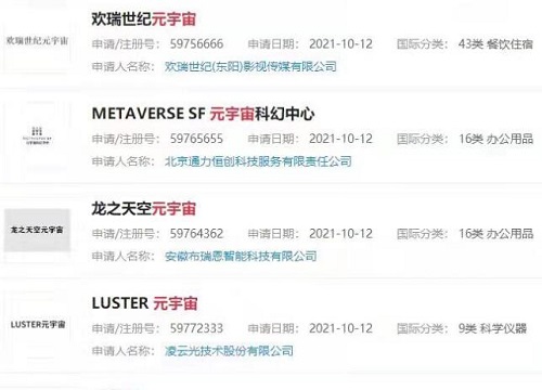 國內(nèi)“元宇宙”商標(biāo)共被申請(qǐng)注冊(cè) 3167 件,自 2021 年 9 月 1 日以來,“元宇宙”相干商標(biāo)被申請(qǐng) 2939 件,騰訊等公司接踵申請(qǐng) QQ 元宇宙等商標(biāo)。此外,小米、字節(jié)跳動(dòng)等公司元宇宙商標(biāo)還遭到多方搶注。