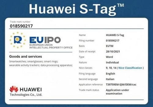 據(jù)外媒消息報道,2021年10月28日,華為向歐盟知識產(chǎn)權(quán)局申請了“華為S-Tag”的商標(biāo)。