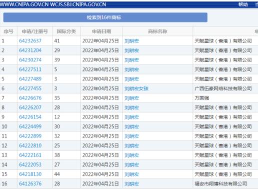 最近臺灣明星劉畊宏爆紅全網,掀起全民健身熱潮,甚至得到國臺辦的肯定。有幾家公司看到了“商機”,竟然趁著熱度注冊了“劉畊宏”商標,雖然商標局顯示受理中。但我們其實不難看到,這樣的商標不是被商標局駁回就是被宣告無效。