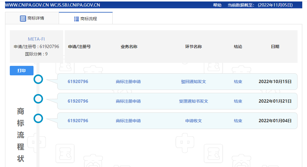 近日,華為技術有限公司申請注冊的2枚科學儀器類和網(wǎng)站服務類“META-FI”商標,流程信息變更為“駁回通知發(fā)文”,上述商標申請于今年1月。